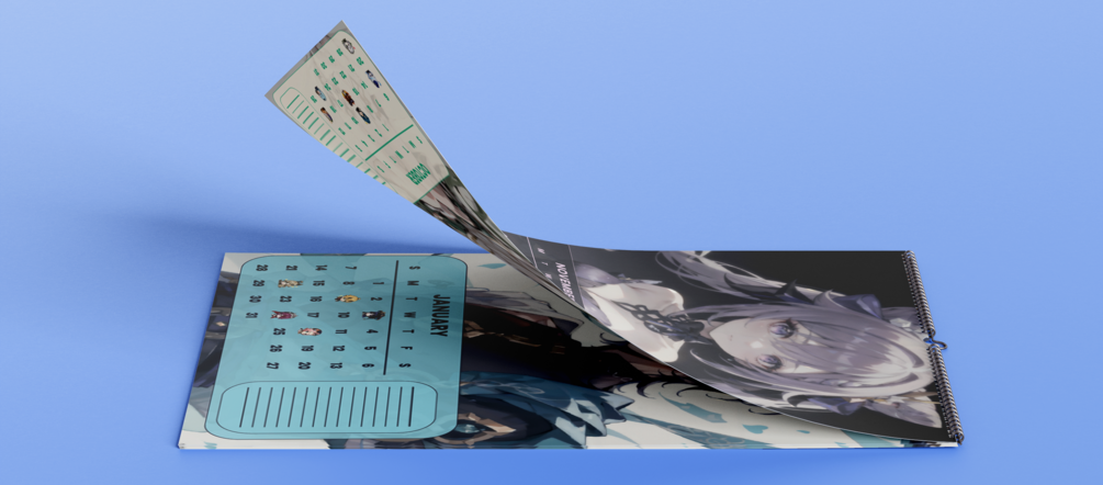 Our calendar is a visual masterpiece, featuring very high qualuity artworks of your beloved Genshin Impact characters, hence you can have print sizes spanning as big as 23 x 33 INCHES. From the vibrant city of Mondstadt to the mystical Fontaine, each month unveils a new piece of art that captures the essence of characters. Get ready to be captivated by the stunning designs and meticulous attention to detail.